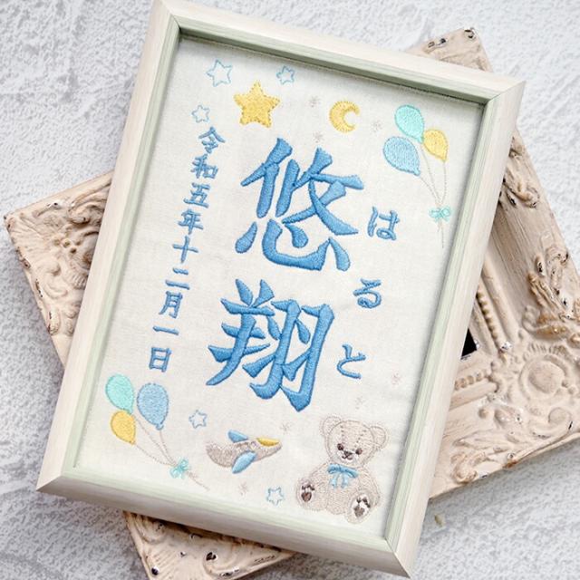 命名書 刺繍 オーダー かわいい おしゃれ 命名札 テディベアブルー 名前旗 名前札 命名 初節句 七五三 お食い初め お宮参り お七夜 ひな祭り 出産祝い 百日祝い 初誕生 赤ちゃん お祝い