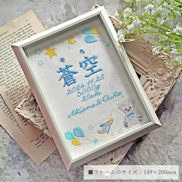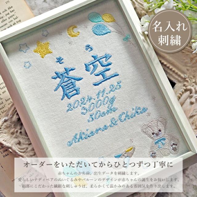 命名書 刺繍 オーダー かわいい おしゃれ 命名札 テディベアブルー 出生データ 名前旗 名前札 命名 初節句 七五三 お食い初め お宮参り お七夜 ひな祭り 出産祝い 百日祝い 初誕生