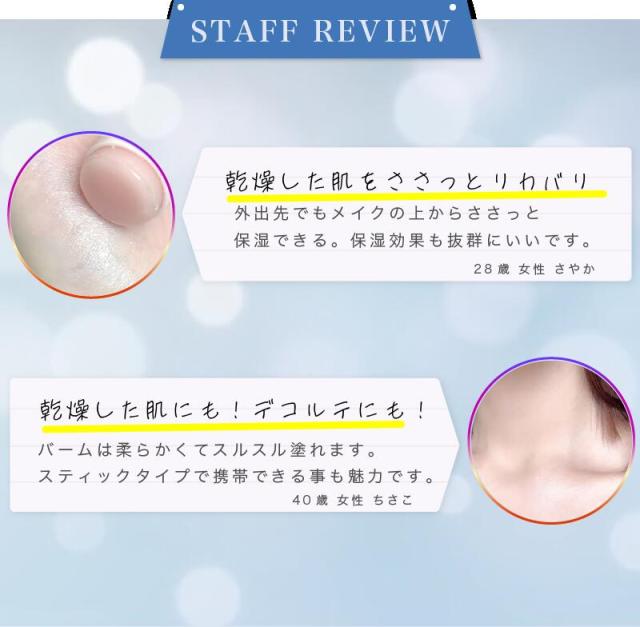 2.ボディでも使用可能なマルチバームで、保湿が必要な部分、しわなど悩みがある部位にお使いください。