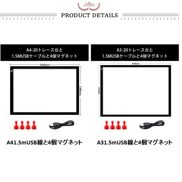 トレース台 A4 A3 無段階調光 ライトテーブル ライトボックス ledトレース台 磁吸式コピーテーブル USB給電 軽い アニメ 製図 漫画