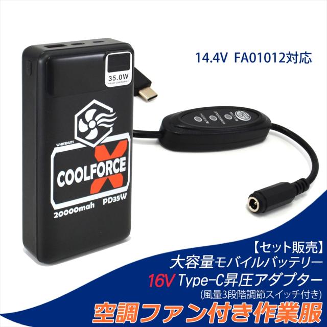 【モバイルバッテリーセット】 16V Type-C昇圧 アダプター L型 14.4V 空調ファン対応 Type-C PD対応 ファン付き作業服 スイッチ付き 2021年 FA01012 ジーベック タカヤ商事 変換 昇圧ケーブル ケーブル ハイパワー モバイルバッテリー 【16V-B-set】