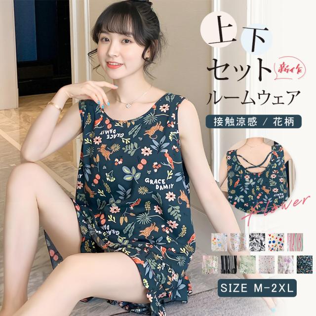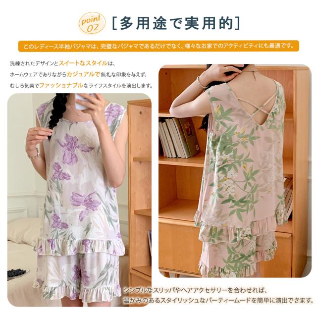 2点セット ルームウェア レディース パジャマ 上下セット 半袖 ルームウェアセット 花柄 薄手 超涼感 ショートパンツ ファッション 速乾 快適 部屋着 エレガント ルーズ 肌触りスト かわいい セクシー プレゼント
