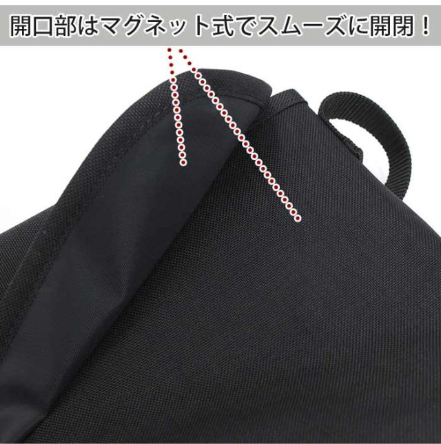 素材はブランド伝統の1000D コーデュラナイロンを採用。開口部のフラップは開閉音を抑えたマグネット仕様。