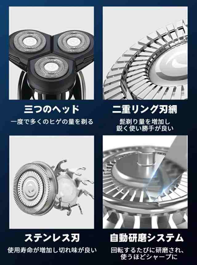 電気シェーバー 男性 メンズ シェーバー 男性 深剃り ひげそり ムダ毛処理 顔そり 髭剃り 水洗い 電動 電動シェーバー 男性用 電気かみそり 鼻毛カッター もみあげ 3個ヘッド IPX6防水 回転式 お風呂ソリ LED 乾湿両用 プレゼント クリスマス