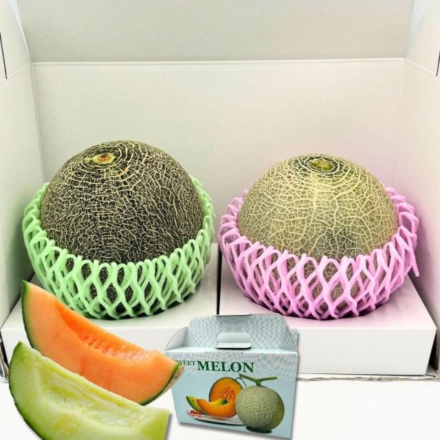 ※赤肉メロン1玉と青肉メロン1玉のセットになります。