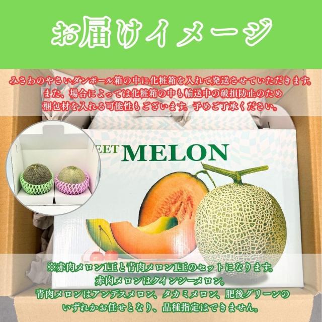 メロン 赤肉 青肉 メロンセット 2玉(1玉 1kg以上) 化粧箱入り ギフト 贈答 大玉 熊本県産 めろん 食べ比べ