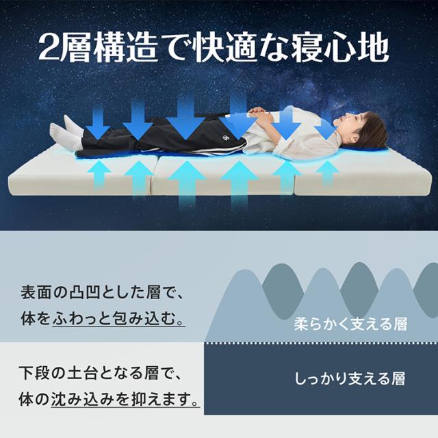 新生活 高反発マットレス 三つ折り シングル マットレス 硬め 体圧分散 折りたたみ 敷き布団 ベッドマットレス カバー付き マットレストッパー ベットマット プロファイル ウレタン 凸凹 消臭 炭 in059-sg