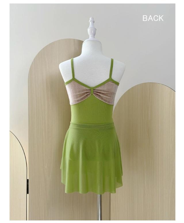 バレエ レオタード 子供 ワンピース バレエレオタード 練習着 演出 キャミソール ノースリーブ スカート 体操 新体操 女の子 キッズ 子ども ジュニア 発表会 バレリーナ バレエ衣装 バレエダンス 可愛い 練習 レッスン グリーン 緑