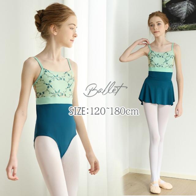 バレエ レオタード 子供 ワンピース バレエレオタード 練習着 演出 キャミソール ノースリーブ スカート 体操 新体操 女の子 キッズ 子ども ジュニア 発表会 バレリーナ バレエ衣装 バレエダンス 可愛い 練習 レッスン グリーン ブルー
