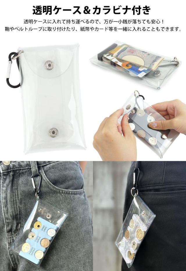 透明ケースに入れて持ち運べるので、万が一小銭が落ちても安心。
