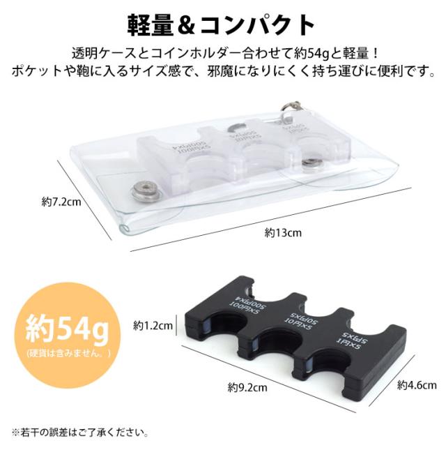 透明ケースとコインホルダー合わせて約54gと軽量! ポケットや鞄に入れて持ち運ぶことができます。