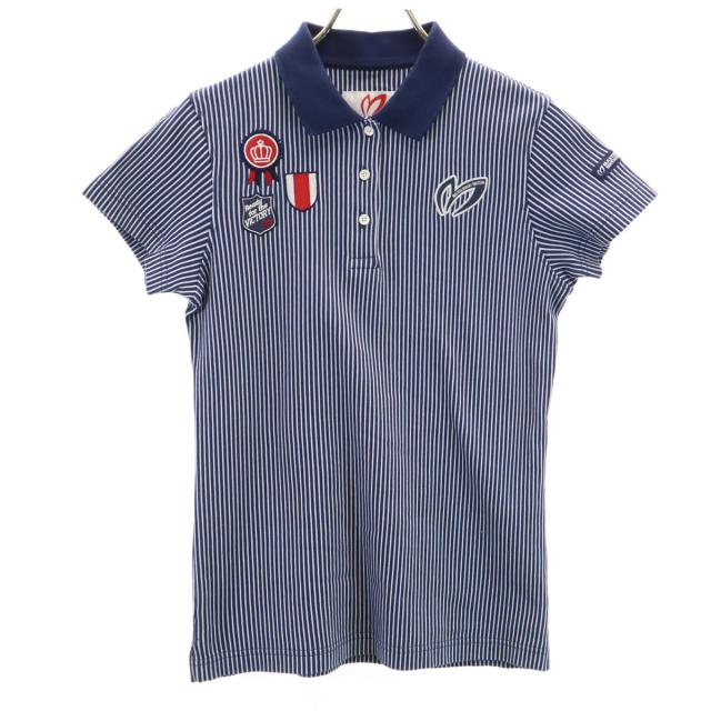 マスターバニーエディション 日本製 ストライプ柄 ゴルフ 半袖 ポロシャツ 0 ネイビー MASTER BUNNY EDITION レディース