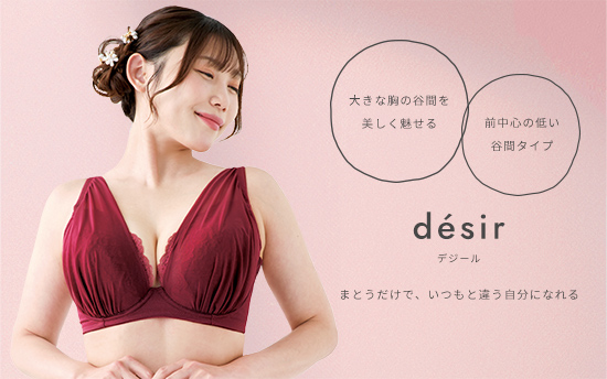 大きな胸の谷間をより美しく魅せる、前中心の低い「デジールブラ(谷間タイプ)」とお揃いのTバック。