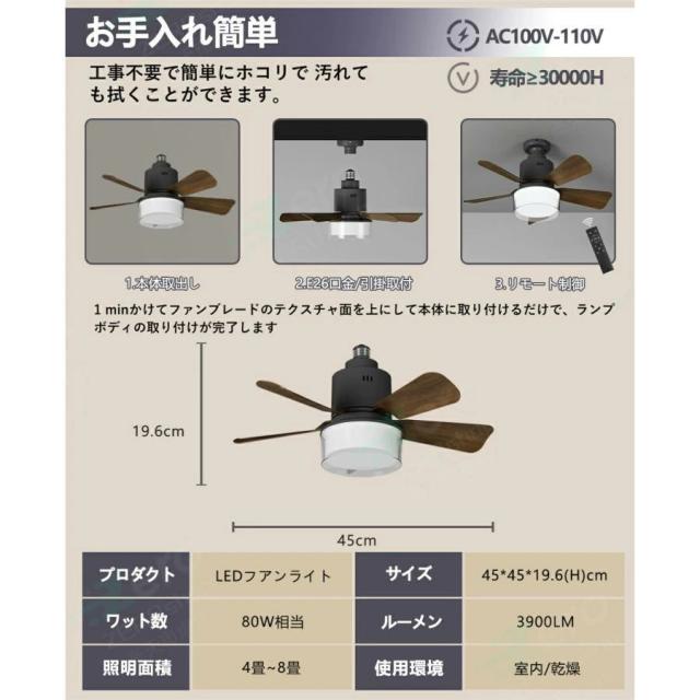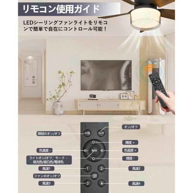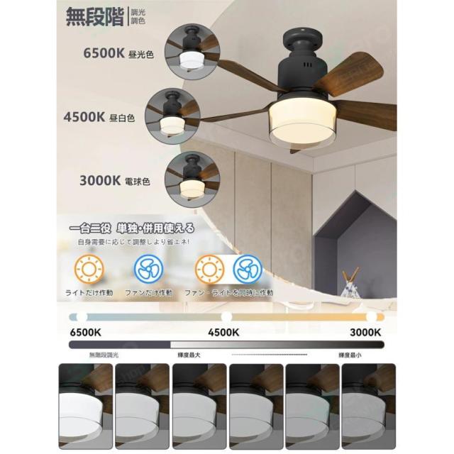 【3年保証】シーリングファン 調光調色 E26口金 4段階風量調節 照明 ファン付き シーリングライト シーリングファンライト おしゃれ リモコン付き 空気循環 LED 扇風機 静か dc リビング キッチン 子供部屋 物置き トイレ 45cm 引っ掛け 脱衣所 洗面所