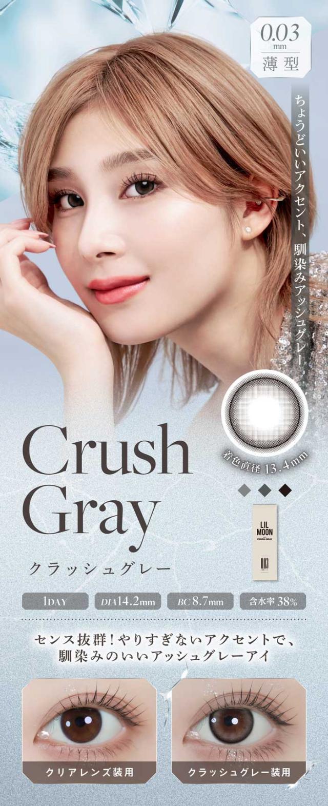 LILMOON 0.03 ZERO クラッシュグレー 1Day 度なし 度あり 新色 カラコン 1箱10枚 ワンデー リルムーン 南部桃伽