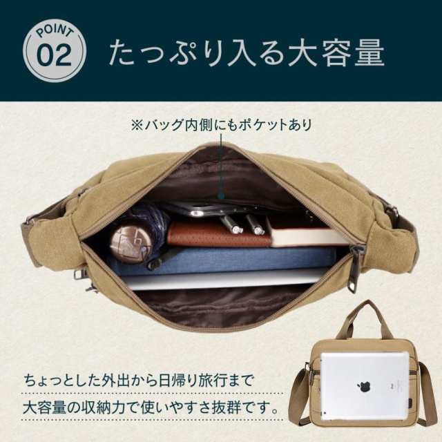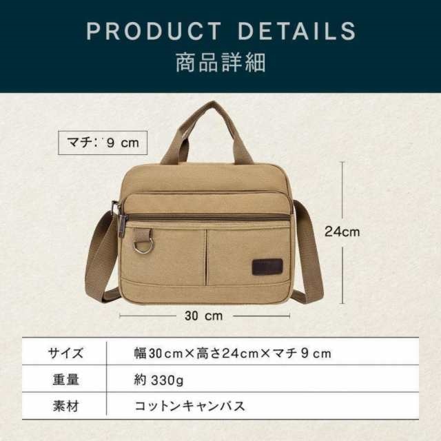 商品名:ショルダーバッグ ポケット メンズ ブラック 収納 斜め掛け かばん おしゃれ 2WAY ファスナー 軽い ストラップ 通勤 大容量 シンプル 通学 a4 無地