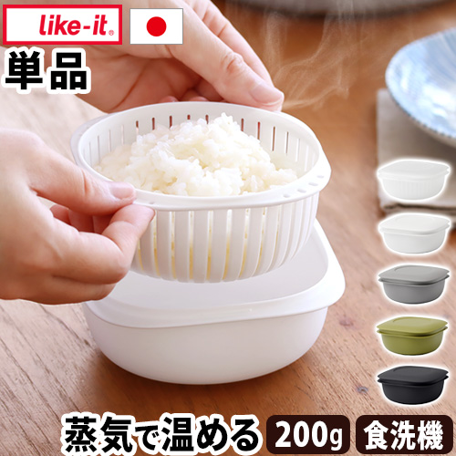 冷凍ごはん 保存容器 一膳分 二重構造 冷蔵 200g Like-it 蒸気であたためる冷凍ごはん容器 [単品] ご飯 容器 冷凍保存 角型 ライクイット ザル 電子レンジ対応 食洗機対応 日本製 耐熱 水切り 小分け おしゃれ 湯切り キッチン雑貨 新生活 一人暮らし