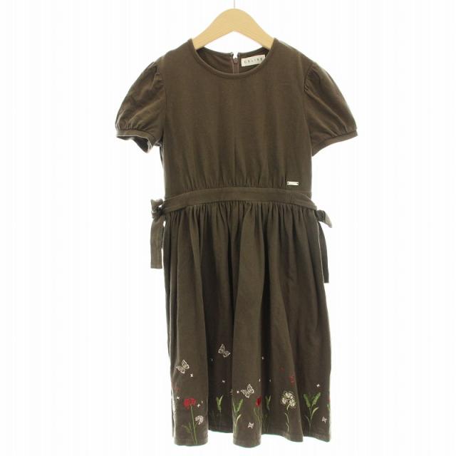 【中古】セリーヌ CELINE キッズ ワンピース BM0500 半袖 花柄 刺繍 ひざ丈 130 茶 ブラウン /☆G ■BM キッズ