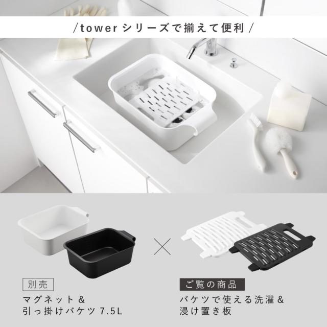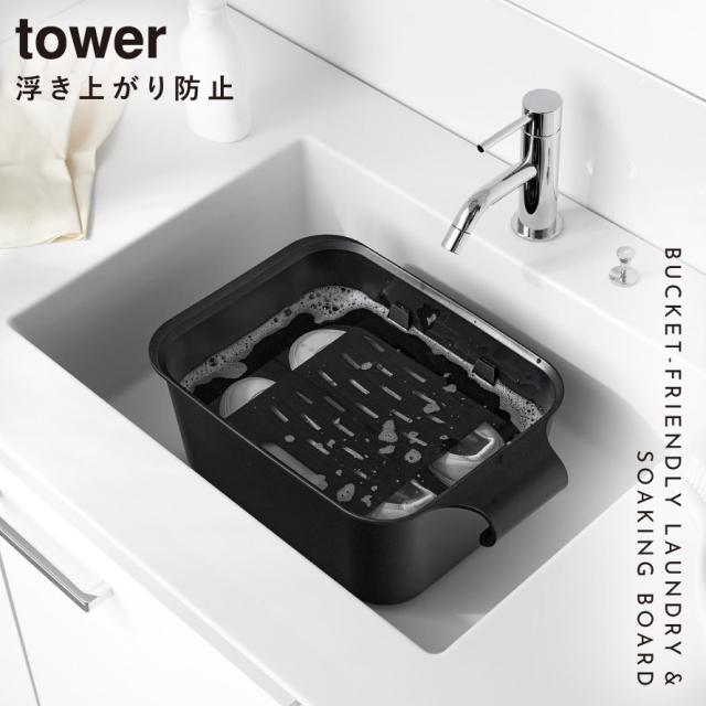 バケツで使える洗濯&浸け置き板 タワー 山崎実業 tower 洗濯板 ミニ つけ置き洗い 上靴洗い おしゃれ モノトーン ホワイト ブラック 10133 10134