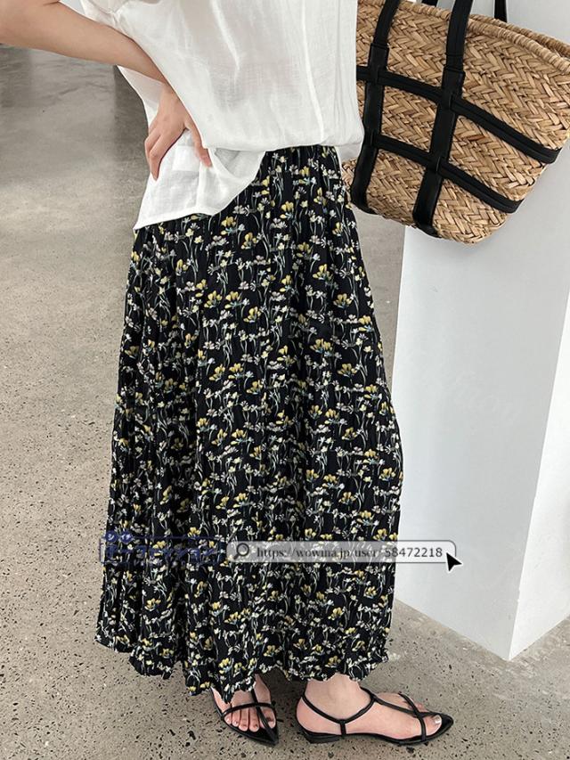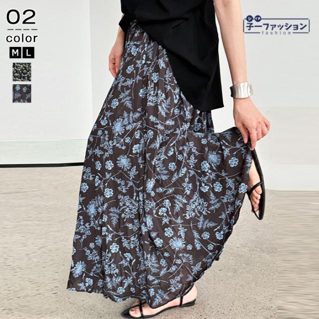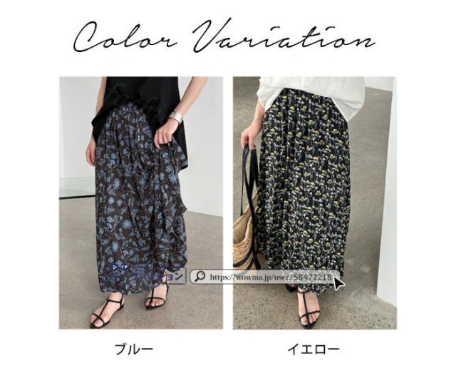 スカート ロング 花柄 ティアード マキシ レディース プリーツ ウエストゴム ハイウエスト 無地 ロングスカート フレア フレアスカート ティアードスカート 切り替えデザイン プリーツスカート Aライン 体型カバー 秋冬 バレンタイン