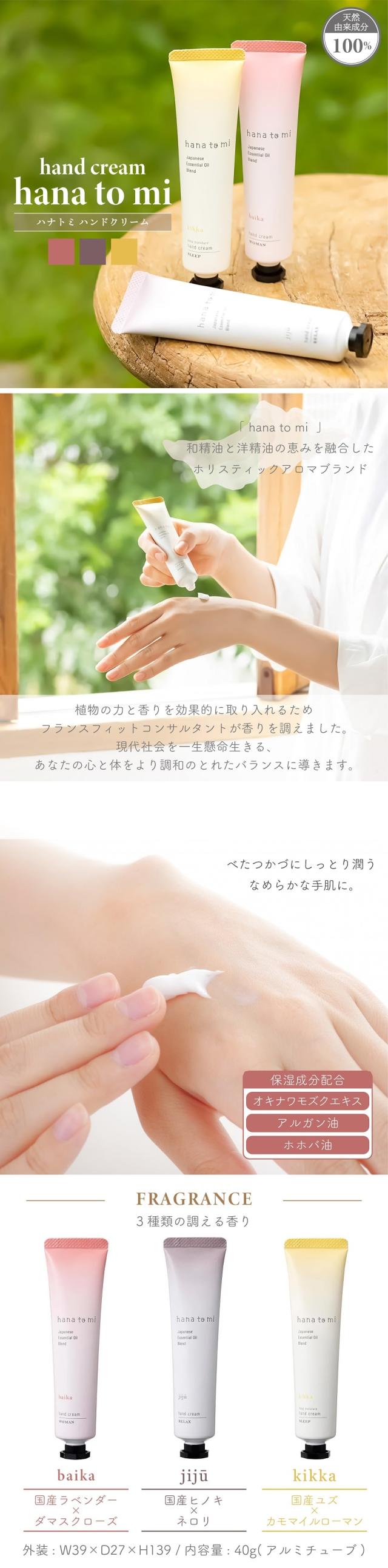 ハンドケア hana to mi ハナトミ ハンドクリーム 40g 天然由来成分100% 天然精油の香り 化粧箱入り FSC認証 保湿成分オーガニック植物油配合 ホリスティック アロマ 美容 ギフト