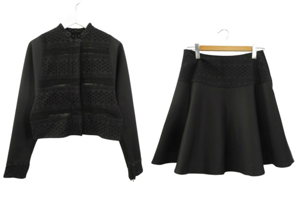 【中古】イオコムイオ セットアップ ジャケット 長袖 スカート 膝丈 レース ブラック 黒 38 M センソユニコ アウター
