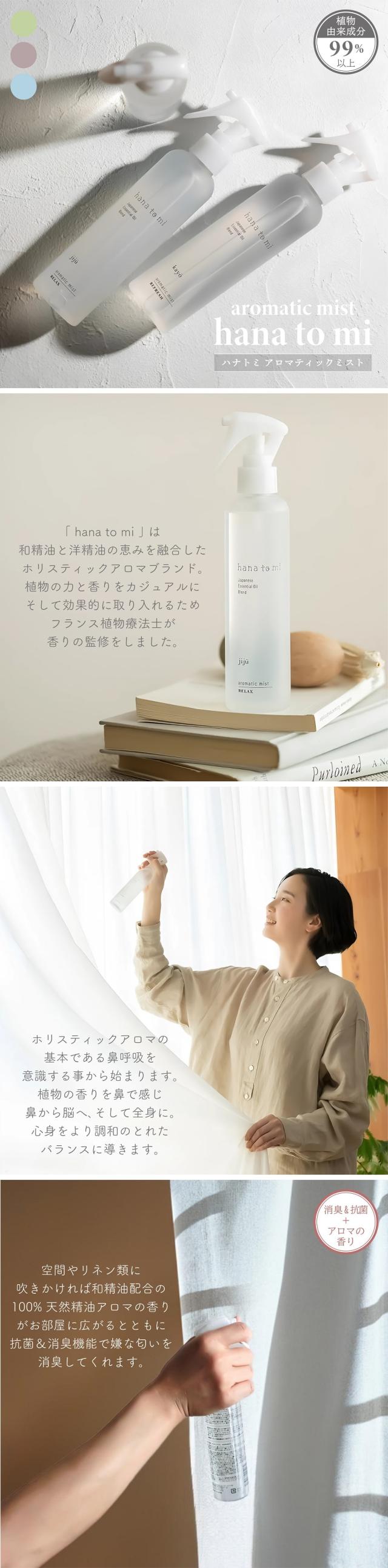 アロマ アロマスプレー hana to mi ハナトミ アロマティック ミスト 200ml 抗菌&消臭 植物由来成分99%以上 天然精油100%の香り アロマミスト ファブリックミスト ホリスティック フレグランス