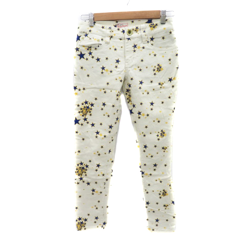 【中古】ロデオクラウンズ Rodeo Crowns スキニーパンツ ロング丈 星柄 1 マルチカラー オフホワイト レディース