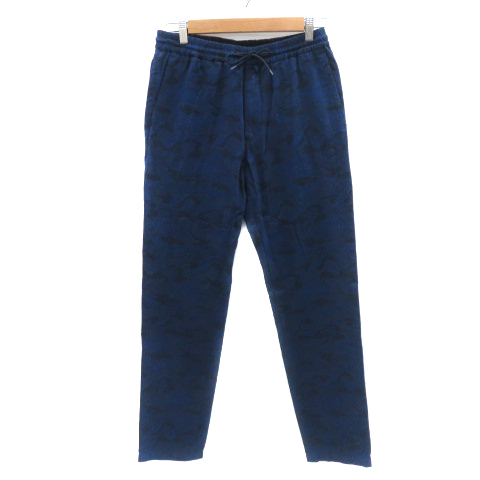 【中古】エディフィス テーパードパンツ イージーパンツ ロング丈 迷彩柄 カモフラ柄 44 XS 紺 ネイビー メンズ