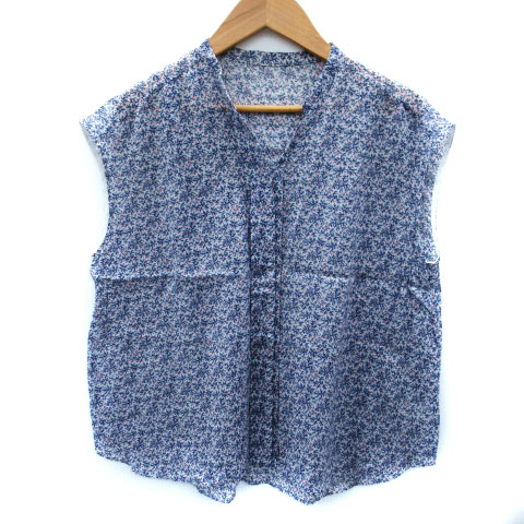 【中古】ヒューマンウーマン シャツ ブラウス ノースリーブ スリットネック 総柄 M マルチカラー 青 赤 レディース