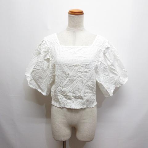 【中古】アズノウアズ ピンキー AS KNOW AS PINKY ドット刺繍 ボリュームスリーブ 半袖 ブラウス 白 ホワイト