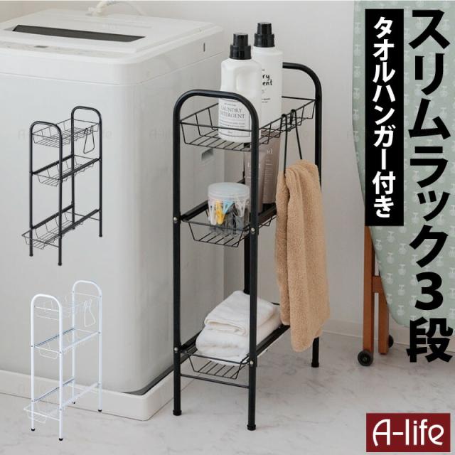 すき間収納ラック 3段 ホワイト ブラック スリムラック 引き出し ラックランドリー収納 ランドリーラック 洗濯機横収納 洗濯機収納 食品ストック キッチン収納 収納 収納ラック すき間 棚 引き出し収納 コンパクト おしゃれ スリム a-life エーライフ 送料無料