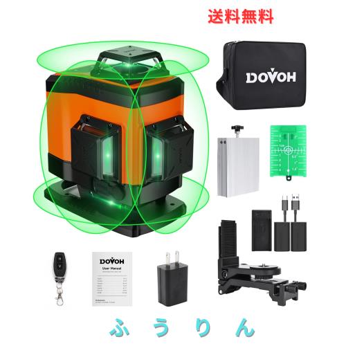 DOVOH グリーンレーザー墨出し器 4x360° 16ライン レーザー墨出し器 レベル 自動補正 高輝度 2本垂直ラインと2本水平 バッテリー2個付き