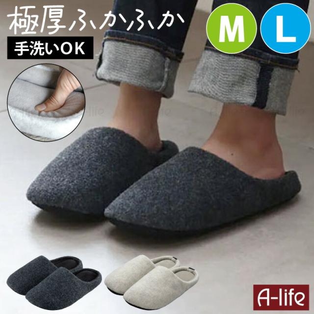 スリッパ 洗える M,L ルームシューズ 極厚 4層クッションソール 高反発 メンズ レディース グレー ホワイト 室内 来客用 暖かい かわいい シンプル 可愛い 滑らない a-life エーライフ 送料無料