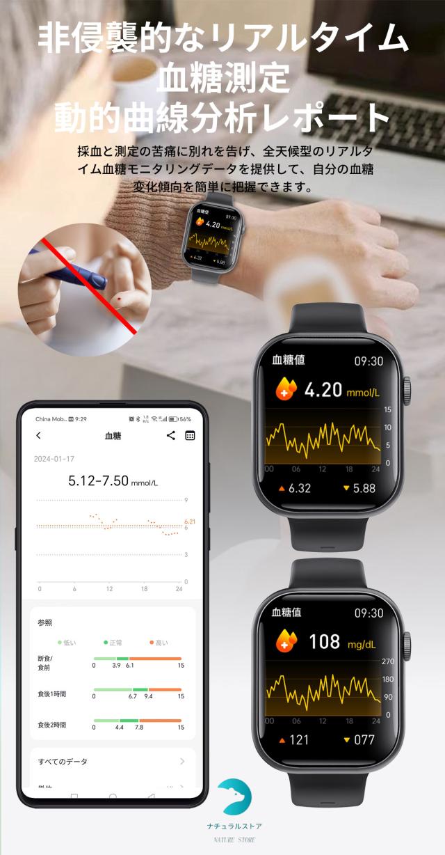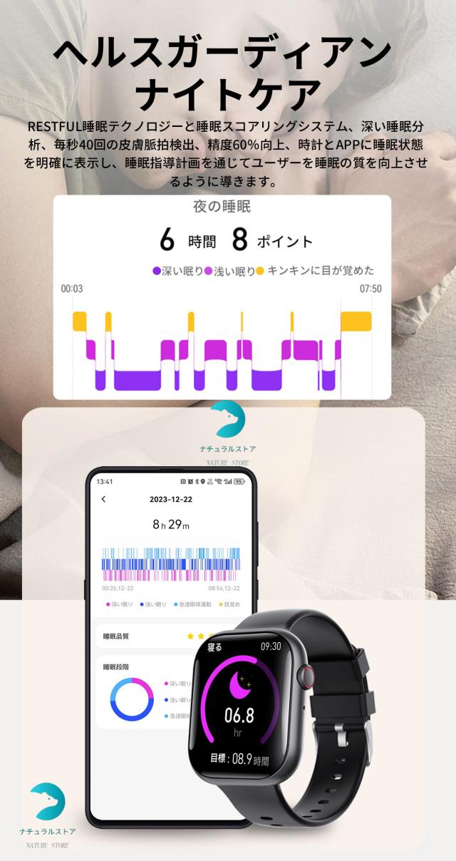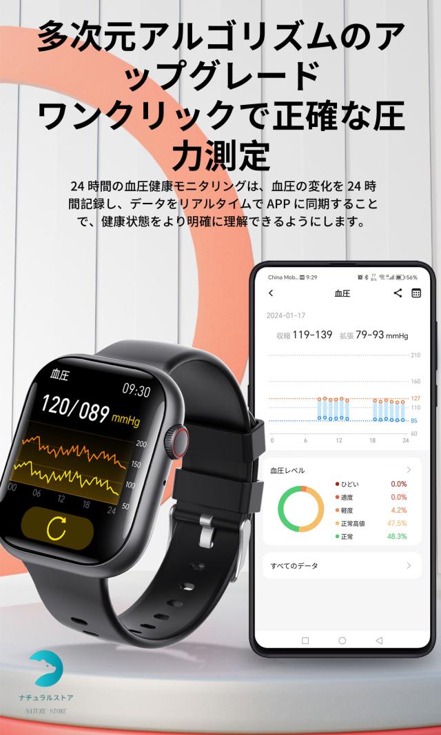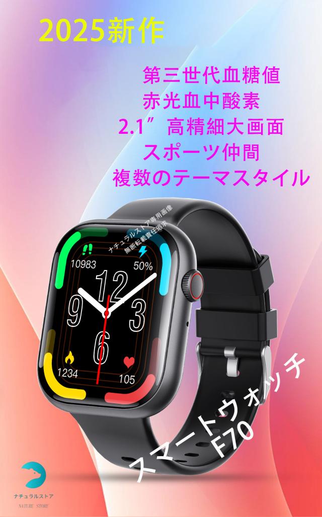 スマートウォッチ 血圧 値測定 血糖値測定 心拍 体温測定 血糖値 血中酸素 2.1インチ 大画面 日本製センサー 薄型 健康管理 日本語表示 日本語説明書 歩数計 iPhone/Android対応 リストバンド 腕時計 着信通知 F70