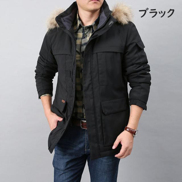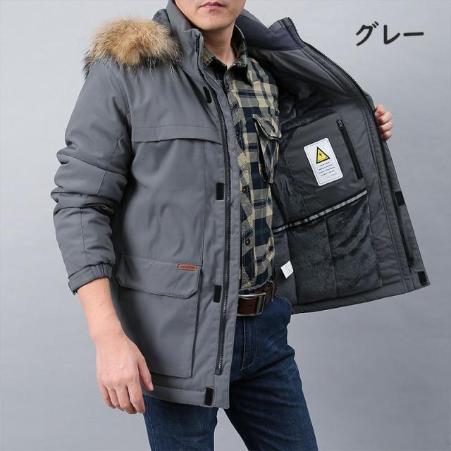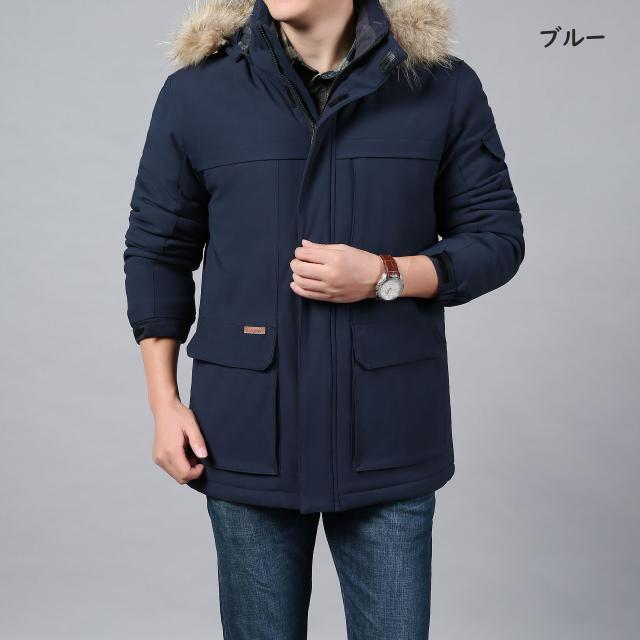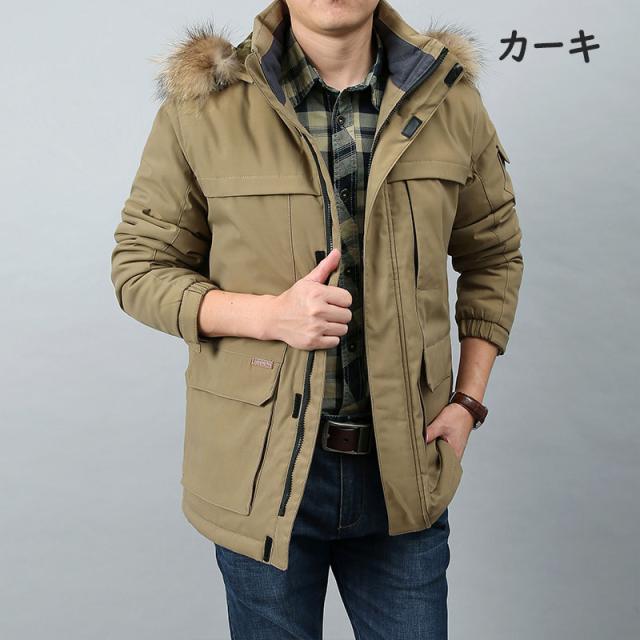 モッズコート メンズ 中綿入り 裏ボア 起毛 ジャケット 無地 厚手 ダウンフーディジャケット 大きいサイズ ファー ジップアップ アウター フード付き 秋 冬 防寒 防風 コート カジュアル