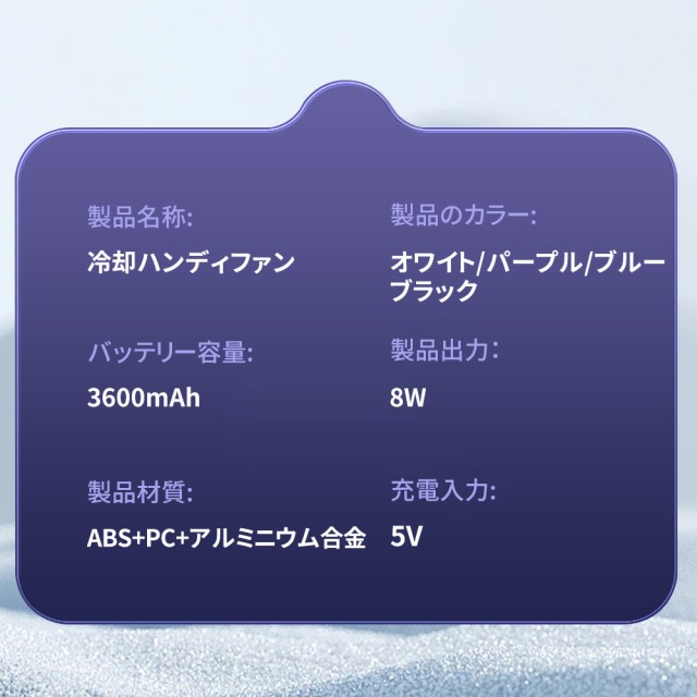 このポータブルファンは、従来のファンと異なり、より便利で快適な使用体験を提供するために設計されました。最新技術を駆使したこの製品を手に入れて、暑い日々をより快適に過ごしましょう。
