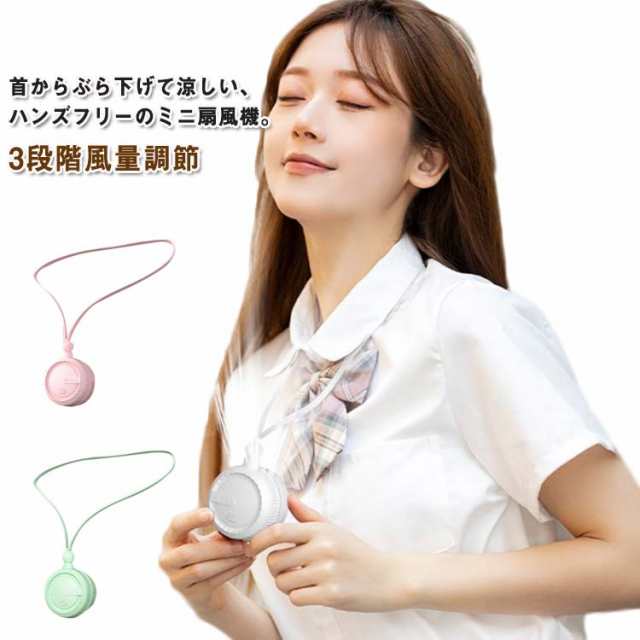 ハンディファン 首掛け 首かけ扇風機 小型扇風機 携帯扇風機 扇風機 ネッククーラー 首掛けファン ミニファン ミニ扇風機 首かけ USB おしゃれ 可愛い コンパクト パワフル送風 3段階風量調節 おしゃれ アウトドア ホワイト ピンク グリーン