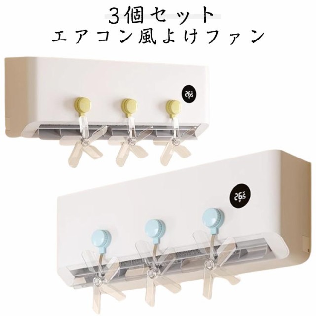 エアコン 風除け ファン 3個セット 簡単設置 かぜよけ 冷風直撃防止 角度調整 冷房対策 エアコン風よけカバー ファン付き 静音設計 節電 省エネ 吸盤式 エアコン リビング 寝室