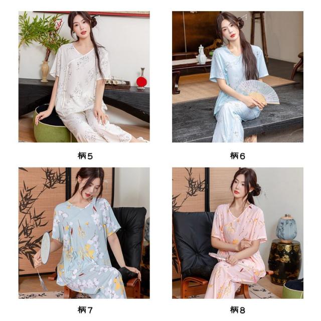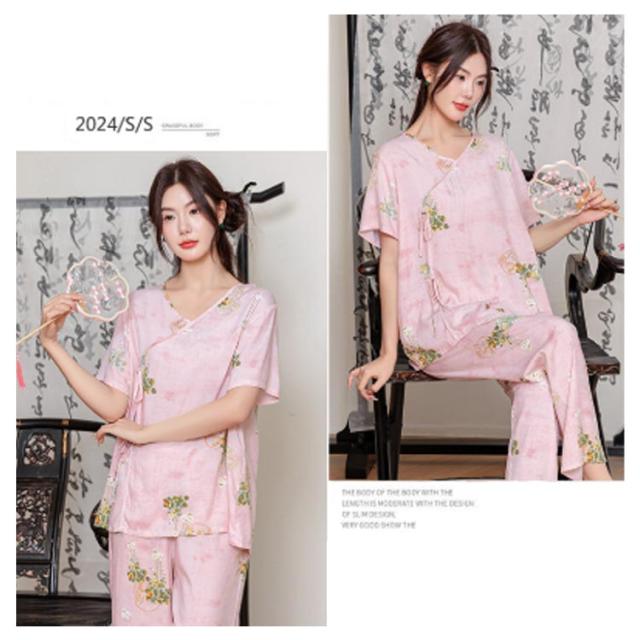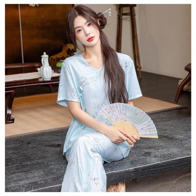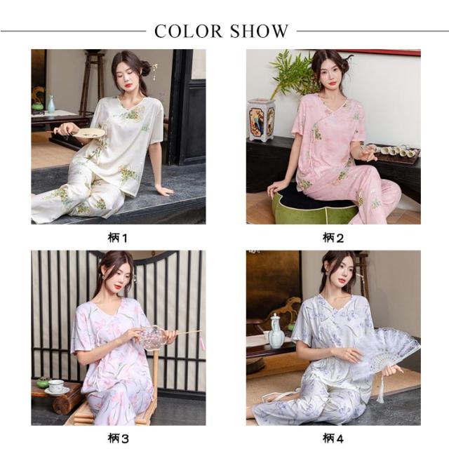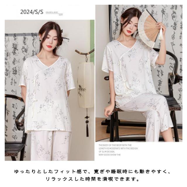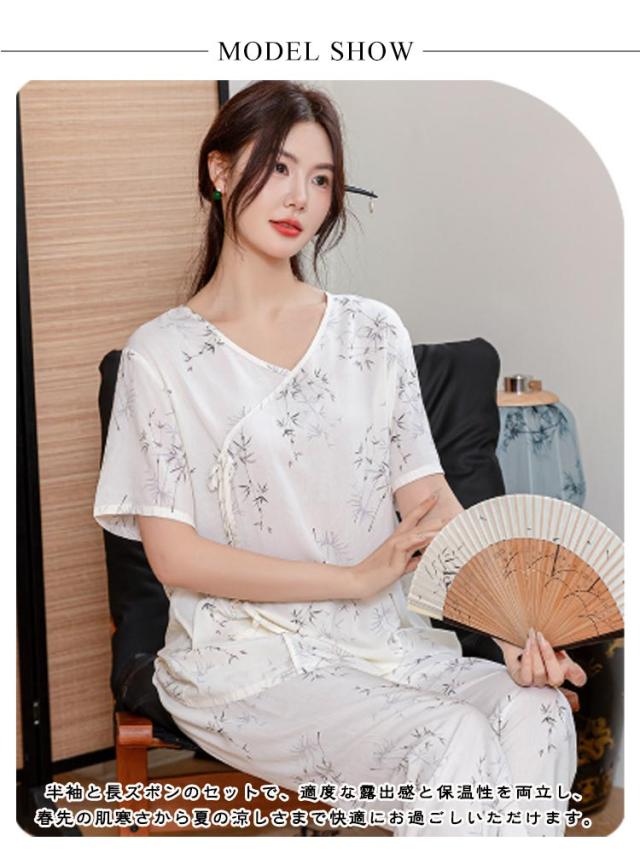 レディース パジャマ上下セット 半袖 体型カバー パジャマ ゆったり ルームウェア 可愛い チャイナ風 2点セット パジャマ上下セット 春秋 ロングパンツ 部屋着 寝巻き プルオーバー 薄手 ウエストゴム 旅行 入院 着替え かわいい ギフト プレゼント