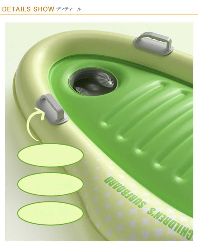 | ・空気注入式のボディボード ・海岸の小さな波に乗りやすい。 ・初心者でも乗りやすく、もちろんお子様にも超オススメです。 | |