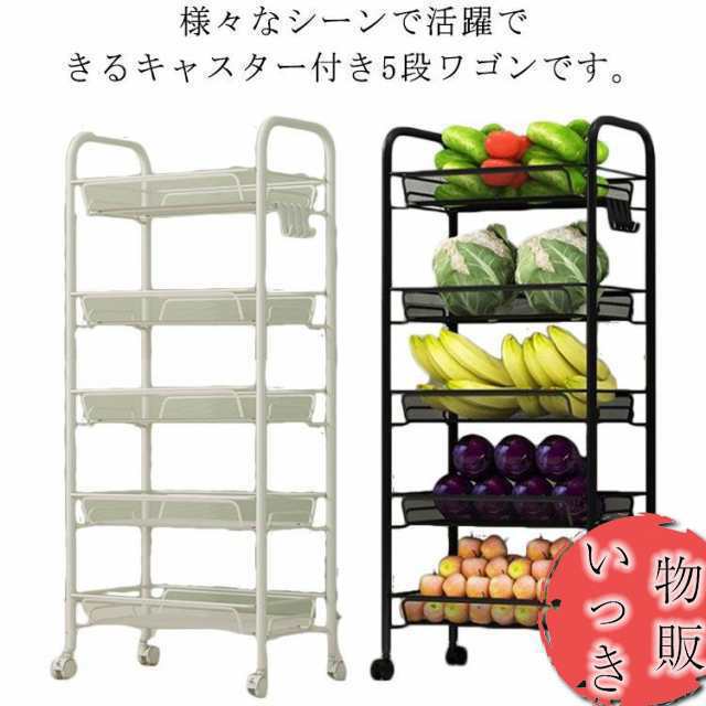 ワゴン 収納ラック キャスター付き 5段 スチールラック キッチンワゴン マルチワゴン 北欧 おしゃれ バスケット 棚 収納かご メッシュカゴ キャス