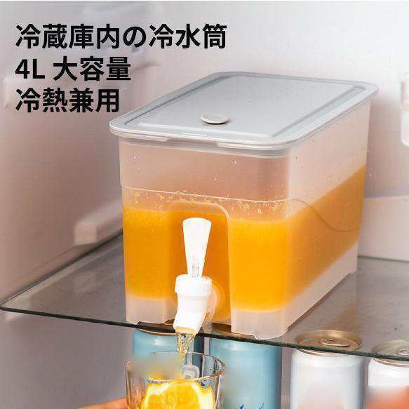 冷水筒 蛇口付き冷水筒 蛇口 4L大容量 横置き 麦茶ポット 飲み物 ドリンク 冷蔵庫ケトル 水差し 透明 ピッチャー ウォータージャグ ドリンクディスペンサー