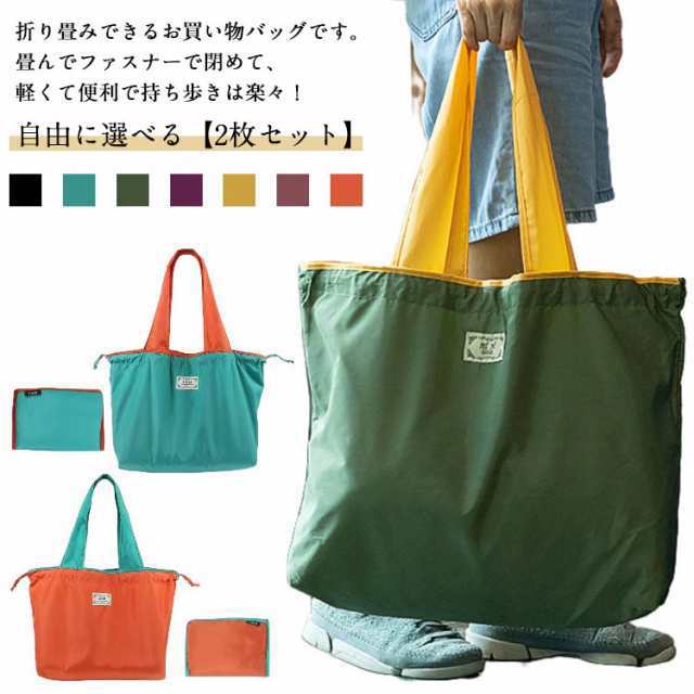 エコバッグ 大容量 かわいい 巾着 折りたたみ トートバッグ 式 軽量 プレゼント レジカゴ ショッピングバッグ 丈夫 撥水 コンパクト 大判 大きめ おしゃれ サイズ マチ広 大きい コンビニ 【2枚セット】 メンズ レディース エコ 鞄 買い物袋 トート