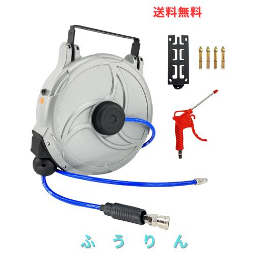 ◆商品名:CXCESNS エアホースリール 自動巻取式 15m 自動巻き上げ ブラケット付 壁掛け 天吊り式 エアホース 180°回転可能 ホース外径φ10mm×内