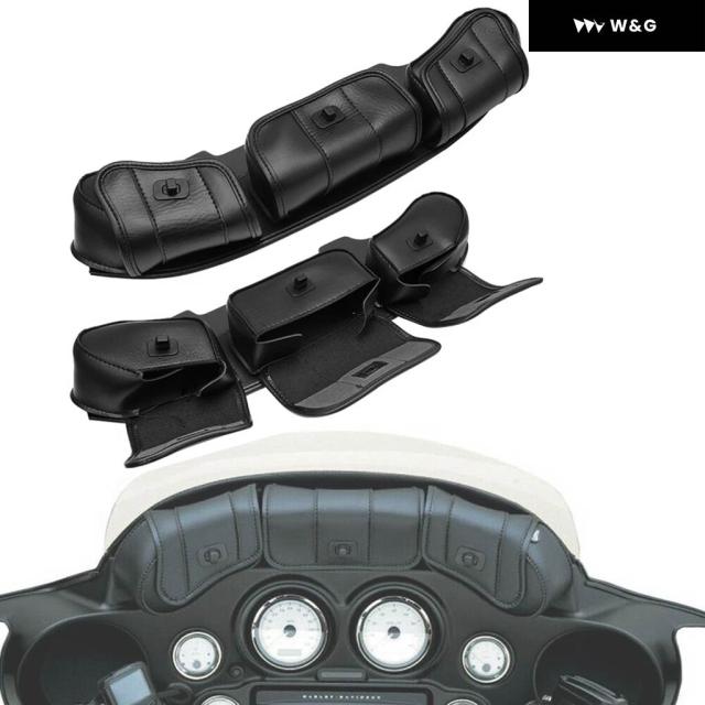 オートバイ バイク ブラック 3ポケット ウインドシールド バットウィング フェアリング ポーチバッグ ハーレー ツーリング エレクトラ ストリート グライド 1996-2013 2012 2011 2010