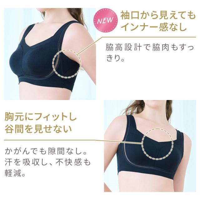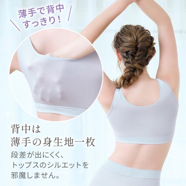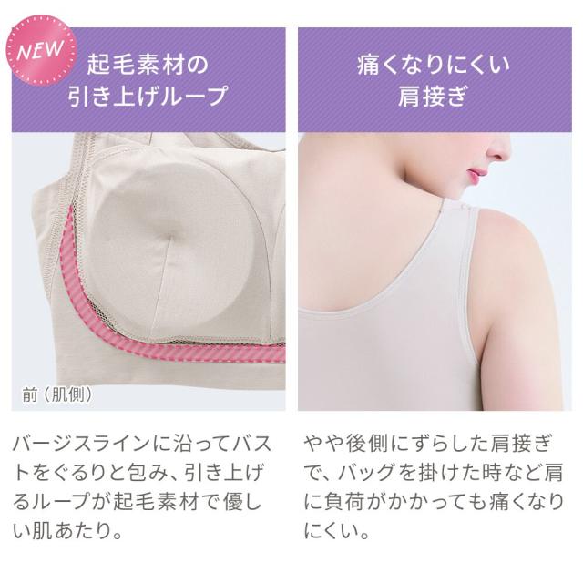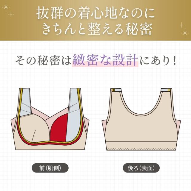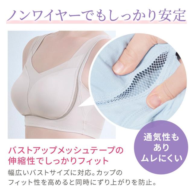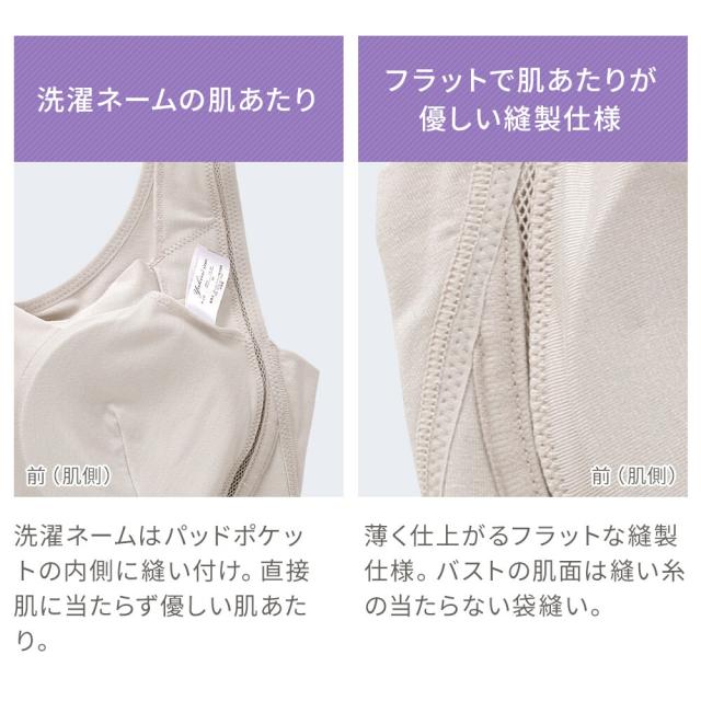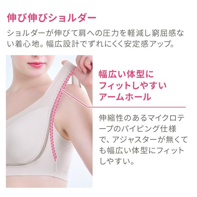 ワイヤー無しなので、窮屈感や締め付け感が少ない、楽な着け心地です。