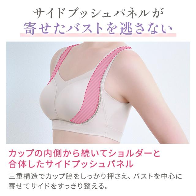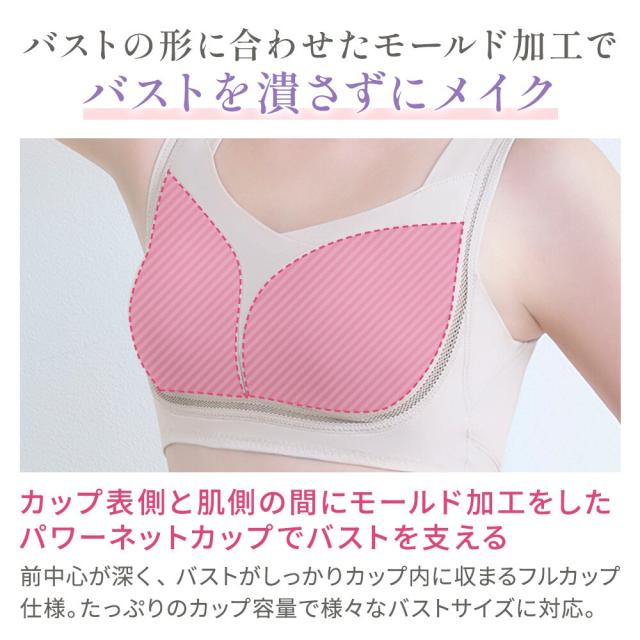 ブラ前中心が深く、バストがしっかりカップ内に収まるフルカップ仕様。