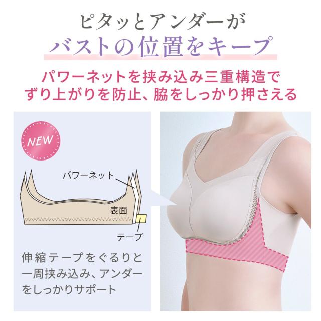 パワーネットは横に伸びにくい方向に設置することで、バストの横広がりを防ぎ、きれいな形をキープします。