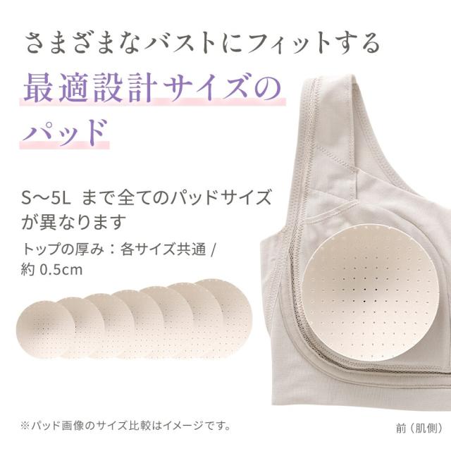 フルカップ・ワイヤーなし(ノンワイヤー)・パッドあり(取外し可)・ホックなし (Uバック)